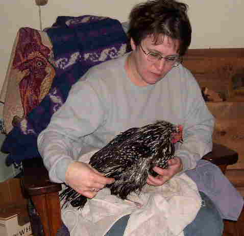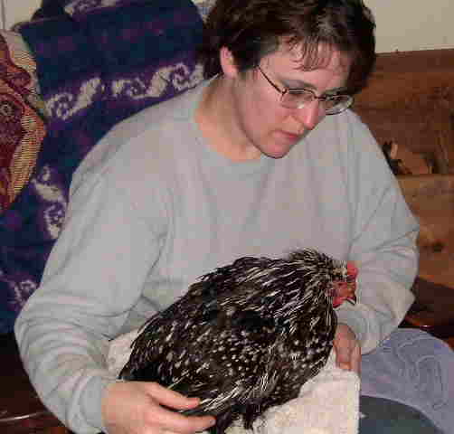 (Now she doesn't look so mad!) Paul found this hen in the cattle stock tank when he went out to do chores Sunday evening. Thank goodness the water level was low and the heater on so she was able to keep her head above the warm water. Maybe she was just enjoying her own personal sauna???
